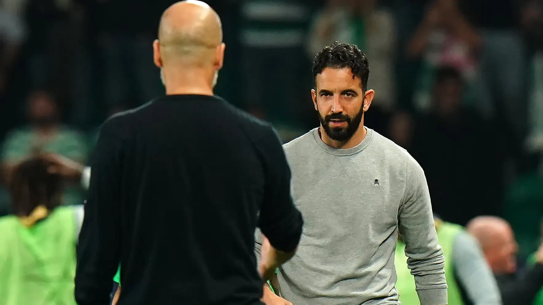 “Tidak, Anda tidak bisa membandingkannya,” ucap Amorim ketika ditanya soal tekanan antara dirinya dan Guardiola.