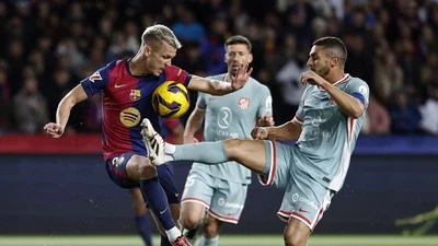 GOL! Barcelona berbalik unggul pada menit ke-41. Lagi-lagi dari korner, kali ini umpan lambung Raphinha disundul Inigo Martinez yang tak terkawal.